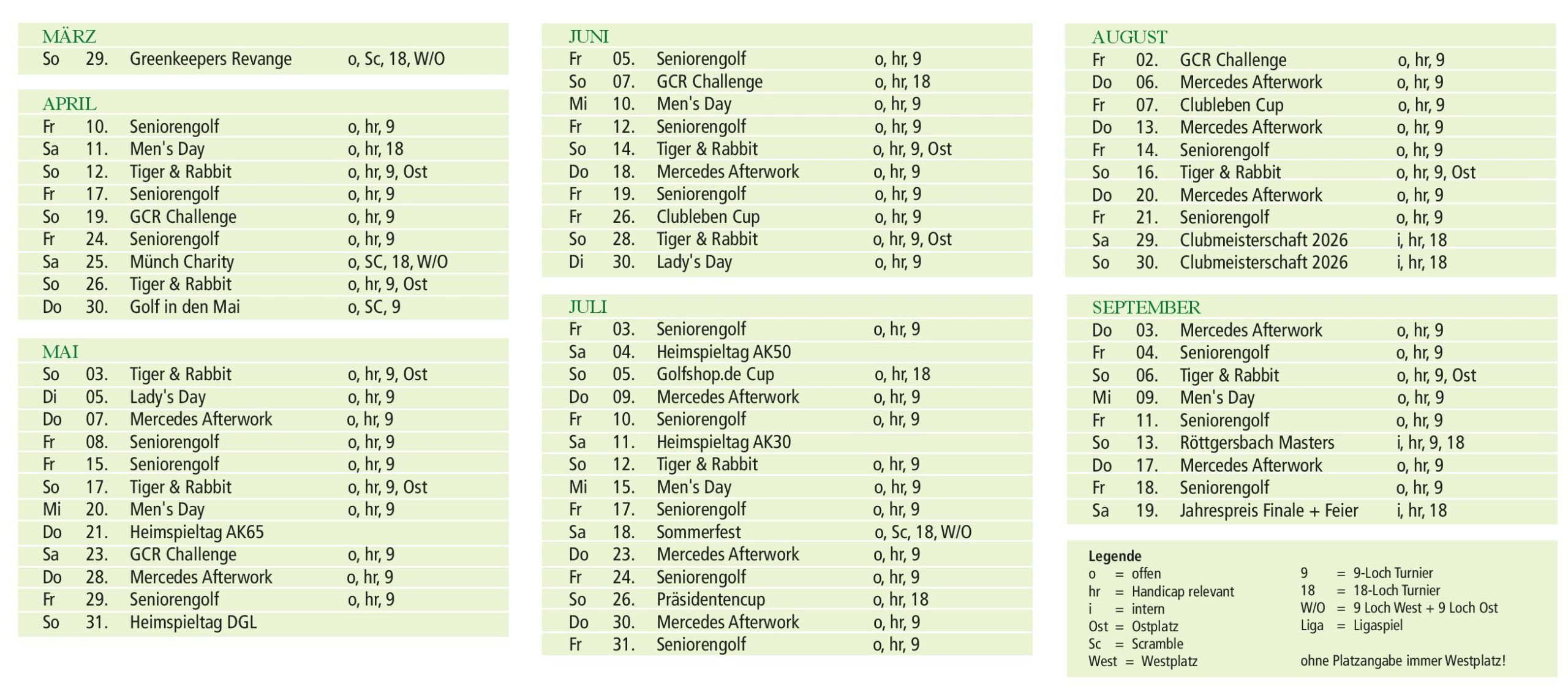 Die Turnier-Rahmenausschreibung ist für alle Turniere im Club gültig. Abweichungen können in den einzelnen Turnierausschreibungen vorgenommen werden.